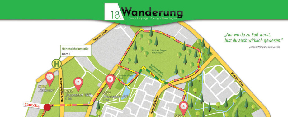 Los geht es am 13. Mai 2023, 10.00 Uhr, in der Kleingartenanlage des KGV „Ostende“ e.V. (Elisabeth-Schumacher-Straße 60, 04328 Leipzig). Wer sich gerne an frischer Luft bewegen möchte, ist herzlich zum Mitwandern eingeladen.